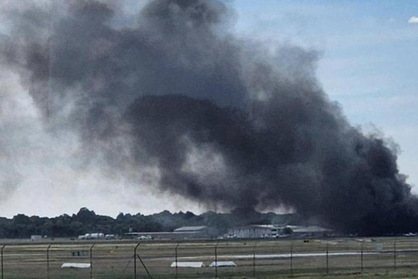 Çarpmanın etkisiyle hangarda büyük bir yangın başlarken, bölgeden yoğun siyah dumanlar yükseldiği bildirildi.