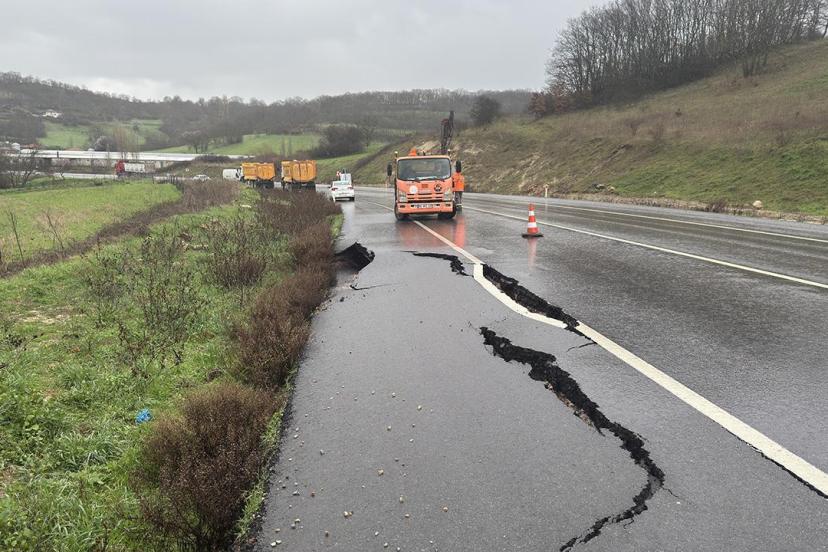 Balıkesir’de etkili olan sağanak nedeniyle Balıkesir-Savaştepe kara yolunun bir bölümünde yarıklar oluştu. Bölgeye giden ekipler, yolda güvenliği sağladı.