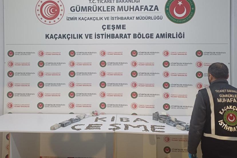 Ticaret Bakanlığı Gümrük Muhafaza ekiplerince, İzmir'deki Çeşme Ulusoy Limanı'nda gerçekleştirilen operasyonda, İtalya'ya kaçırılmak istenen 7 bin 550 adet tarihi sikke ve figür ele geçirildi.
