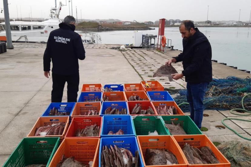 Denetimlerde, dip trolü avcılığında yasal sınır olan yüzde 30 kalkan kotasını aştığı tespit edilen teknede incelemelerde ele geçirilen 850 kilogram kalkan balığına el konuldu.