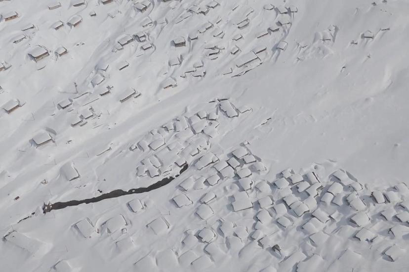 Rize’nin Çamlıhemşin ilçesine bağlı Kavrun Yaylası'nda kar kalınlığı 3 metreyi aştı. Köy evlerinin beyaz örtüyle kaplandığı yayla, dron kamerasıyla görüntülendi.