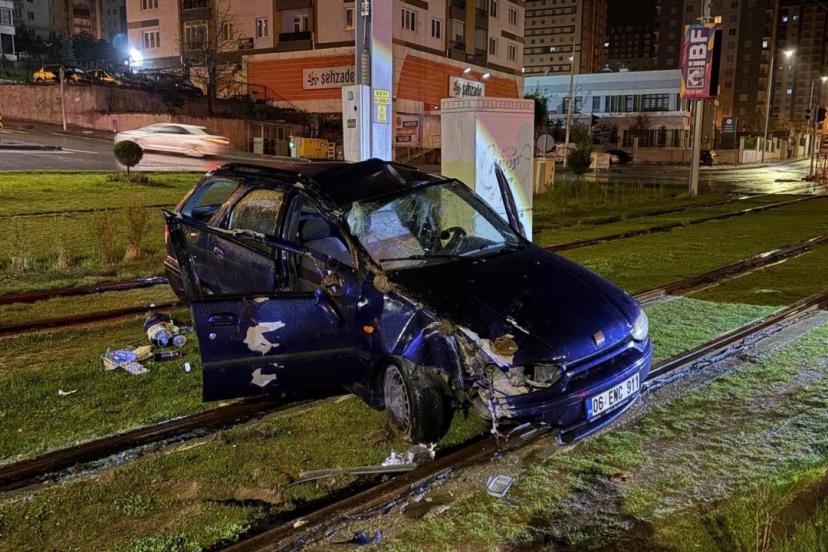 Kayseri'de otomobil tramvay yoluna girdi: 1 yaralı