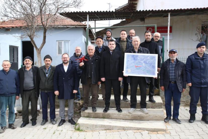 Mahalleye ziyarette bulunan TUSAŞ ekibi, Dümrek Mahallesi Muhtarı İbrahim Erbek ve vatandaşlarla bir araya geldi.