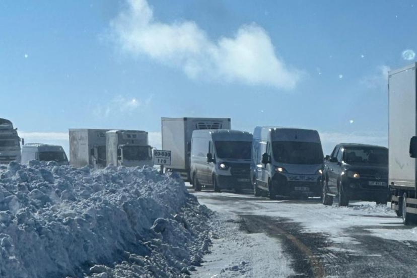 Yoğun tipi nedeniyle Kars-Göle kara yolunda bazı tırlar yolda kaldı. Tırların yolu kapatması sonucu ilerleyemeyen yaklaşık 40 araç mahsur kaldı.